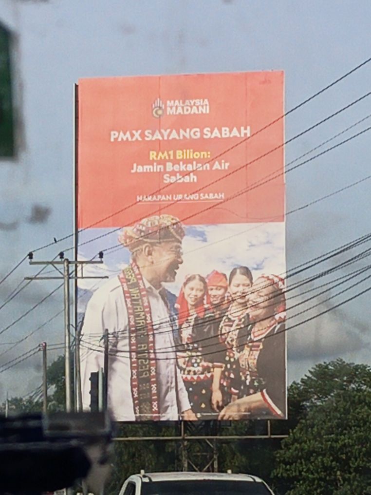 Then, here. Take a look at this picture in ads. Anwar is using a propaganda method claiming that he "loves" Sabah. For me, we need more than just propaganda or the idea that someone loves the place, or yeah. Sabah needs the assertion of autonomy and the restoration of justice, dignity, rights, and decentralisation. Not the old school, ancient political party loyalty (basically I call it coercive tribal mentality). Not blaming the victims of the broken system. Shafie Apdal said certain groups of people are poor because those people have healthy diversity in political beliefs and alignments. I'm tired of this Malaysian politics with scare tactics, guilt-tripping, propaganda-oriented approaches, greed for power instead of solving the real problems. Oh yeah, I forgot to mention that politics in Malaysia also include discrimination based on ethnicity and religious identity, as well as propaganda promoting ethnic and/or religious supremacism.